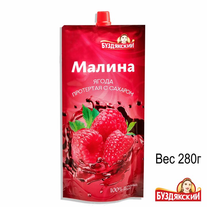 Буздякский Ягода протертая с сахаром Малина 280гр/24 д/п